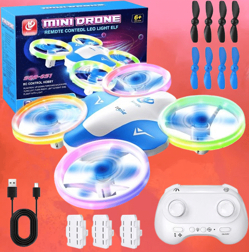 Malgré l’absence de caméra et sa sensibilité au vent, le Korffe Mini drone (8,5/10) est idéal pour les enfants et débutants. Ses 3 batteries, stabilité (grâce au gyroscope) et lumières LED offrent un premier drone ludique, sécurisé et sans prise de tête, parfait pour les enfants de 6 à 10 ans.